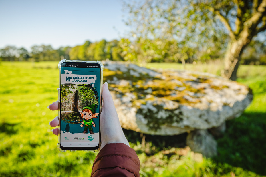 Application de jeu gratuite à télécharger sur App Store et Google Play. Télécharger « Piste et Trésor » et rechercher le parcours « Les mégalithes de Lanvaux ».
